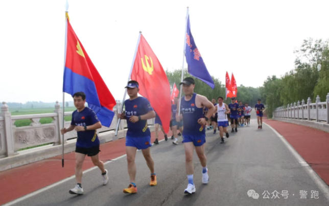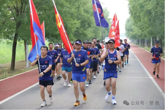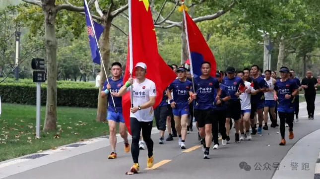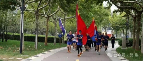 机缘偶现,让我们遇见了“中国警跑团”——热烈而不张扬的Logo、阳光而不失鲜艳的跑服、精致而不失豪迈的旗帜,颤动警跑者的心弦。和同志们一合计,大家就委托我联络,一定要加入这个警跑大家庭。于是,我忐忑地联系了“中国警跑团”的创始人“涂涂”。在看了我们的人员构成和活动记录后,我们获准入团,“博兴警跑团”的旗帜飘扬起来,同志们穿上统一的“中国警察”的警跑战袍。自从找到了组织,亮出了战旗、披上了战袍,我们的队伍壮大了许多,平日里的体育场,周末、节假日的景区大道,都能看到穿着警跑服的奔跑者。每逢国庆、元旦、警察节,我们都会组织大型的集体跑,民警辅警参与的积极性高涨,带动全局的体能训练上了一个大的层次,“博兴警跑团”也成为这座城市里最靓丽的那道跑步风景线。逢有警跑赛事,我们也会举旗到场,与来自全国各地的警察跑者一起拼搏奋进、护卫赛事,使命感、自豪感、归属感拉满爆棚!