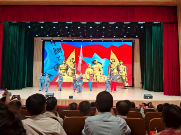 汇演尾声,全场观众与演职人员共同起立,高唱《没有共产党就没有新中国》。雄壮的歌声响彻剧场,字句间饱含着对党的无限忠诚与对祖国的深切热爱,将现场氛围推向顶点。整场演出主题鲜明、情感真挚,在近两个小时的时间里,用艺术的温度焐热了红色记忆。