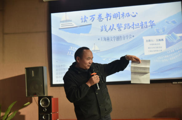 2025年11月21日下午,一场主题为“读万卷书明初心 践从警路担韶华”的文学创作分享会在宁波市北仑区图书馆温馨举行。中国作协会员、浙江公安文化名家王海燕应邀走进北仑,与北仑公安分局青年民警展开了一场别开生面的文学对话。