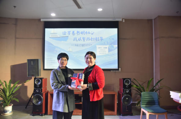 在互动环节,北仑公安青年民警洪资凯、朱乐怡、姚凌浩、张凌傲等踊跃参与,分享了《平凡的世界》《苦难辉煌》《太白金星有点烦》和《法医秦明—幸存者》等经典作品的阅读感悟。读书兴趣小组骨干王响、公安大学实习生代表康文豪等谈了对开展文学创作分享会的感受,表示以后结合工作多看书写作,成为公安作家协会会员。活动现场还举行了向图书馆赠书的简短的仪式,区图书馆馆馆长何颂英接受了王海燕的赠书《燃烧的海》,王海燕为民警代表送上的亲笔签名书《燃烧的海》。