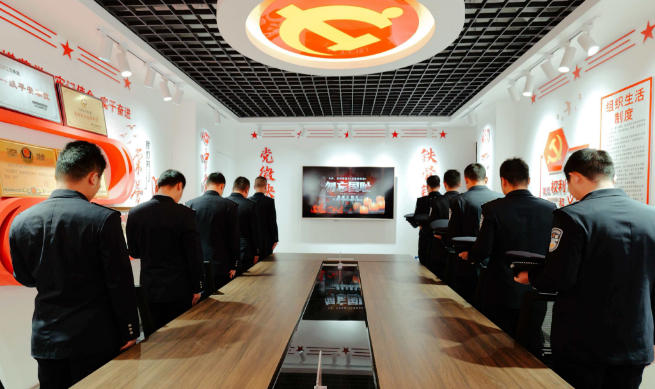 派出所首先组织全体民警观看了电影《南京!南京!》,并以默哀的形式祭奠南京大屠杀的无辜死难者,深切缅怀所有惨遭日本侵略者残害的同胞与中国人民抗日战争中献出生命的革命先烈和民族英雄,勉励全体民警以史为鉴、铭记历史,不忘民族之痛。在庄严而凝重的氛围里,所长带领民警们重温了入警誓词,牢记初心根脉、强化使命担当,铿锵有力的誓言,在营区内激荡回响。
