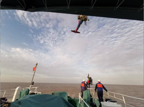 接到险情后,盐城海上搜救中心立即快速响应,按照应急预案迅速应对开展救援。盐城海上搜救中心核实渔船船位及航向航速等信息,通过智慧海事平台指引该渔船全速向最近的射阳港航行,同时按照安全、快速、可靠的原则,研究制定海巡艇和直升机实施海、空联合救助方案。