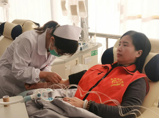 在中心血站二楼的采集室里,身穿红马甲的志愿者正按照登记的顺序,依次进行血样采集,检验合格后,进入到采集大厅里进行成分血的采集。由于采集成分血的时间大约一个小时左右,志愿者们一边采集成分血,一边玩着手机,一副悠然自得的样子。正在采集成分血的红武志愿服务队负责人孙红武表示,今天是第40个国际志愿者日,我们组织了30名志愿者到中心血站,无偿捐献血小板,庆祝我们自己的节日。