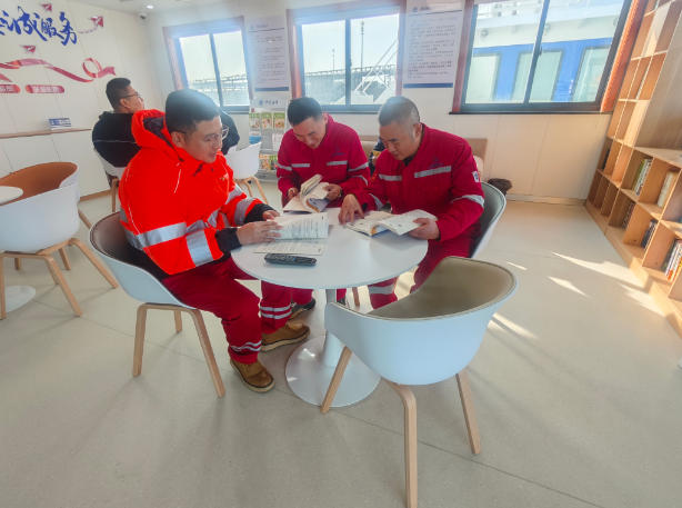 这座利用海事趸船倾心打造的“船员驿站·船员党员之家”,以“党建+服务”为基础,集流动船员党员日常活动以及到港船员学习交流、休闲娱乐、政策法律咨询和权益服务于一体,内部设有党员活动区、政策咨询区、休闲娱乐区、图书阅览区以及健身锻炼区等多个功能区域,既可以为奔波在海上的船员提供温馨的歇脚处,也可以让他们在这里充实自己、提升业务能力。同时,驿站还提供收发快递、基本医疗物资、应急事项绿色通道等便捷服务,力求让船员在靠岸后能够方便办事、舒心放松。
