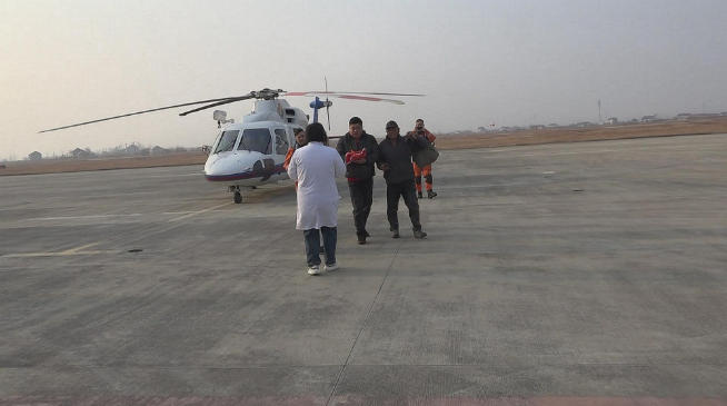 12月29日中午,在距离射阳通用机场300公里左右的海面上,一渔民在海上进行捕捞作业时,手指断裂受伤,鲜血直流,急需转运上岸送医院救治,盐城海上搜救中心迅速联合交通运输部东海救助局、射阳县120急救展开救援工作。