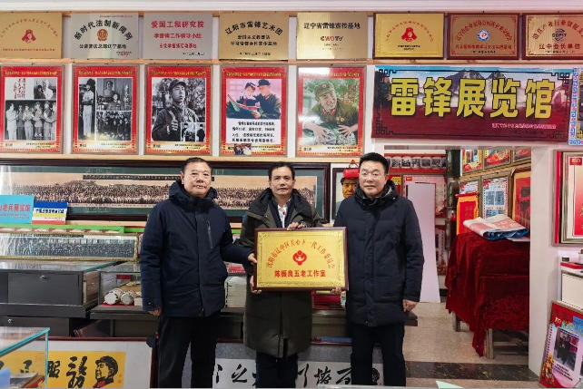 调研组一行来到辽中区民间传承红色展览馆,赵斌与辽中区关工委常务副主任关荣伟共同为“陈振良五老工作室”授牌。陈振良作为区关工委“五老”宣讲团成员,自 2018 年起无偿拿出自家门市楼及院内1800 平方米土地打造红色展览馆,以实际行动践行老兵与共产党员的使命担当,让红色基因成为滋养青少年成长的精神养分。