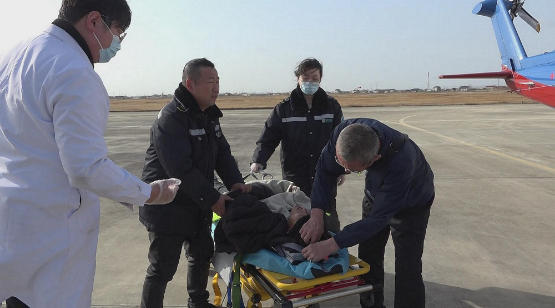 下午15点45分左右,救助直升机返场到射阳通用机场降落,受伤渔民随即被等候的120医护人员转运上救护车,快速送到医院救治。目前,经过检查治疗,受伤渔民的生命体征平稳,仍在医院接受进一步的观察治疗。(通讯员:陈冬平 伍士林 马熙茗)