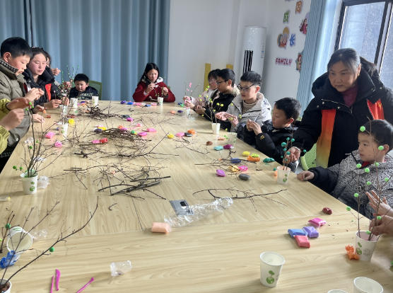 手工制作环节更是将活动推向高潮。志愿者为孩子们分发彩泥、纸杯、树枝等材料,耐心指导大家动手制作“DIY小树苗”。孩子们充分发挥想象力,精心打造属于自己的小树苗。不一会儿,一棵棵色彩鲜艳、造型可爱的手工小树苗纷纷诞生,孩子们在动手实践中锻炼了动手能力,也进一步加深了对“绿色希望”的理解。