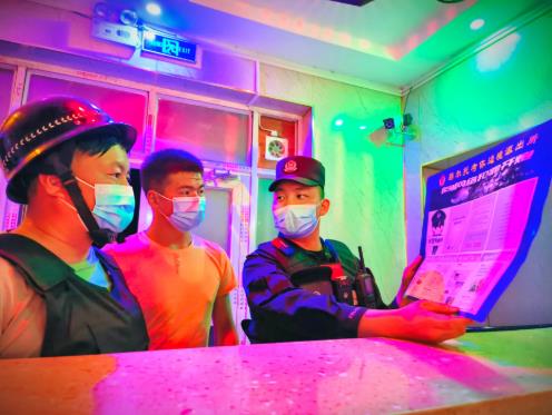 期间,民警深入宵夜档、歌舞厅、台球室等“夜间经济”场所,采取多种勤务方式,开展巡逻检查,同时向辖区群众宣讲防诈骗及个人安全防护知识,为广大群众的平安出行筑牢了安全屏障。(刘楠)