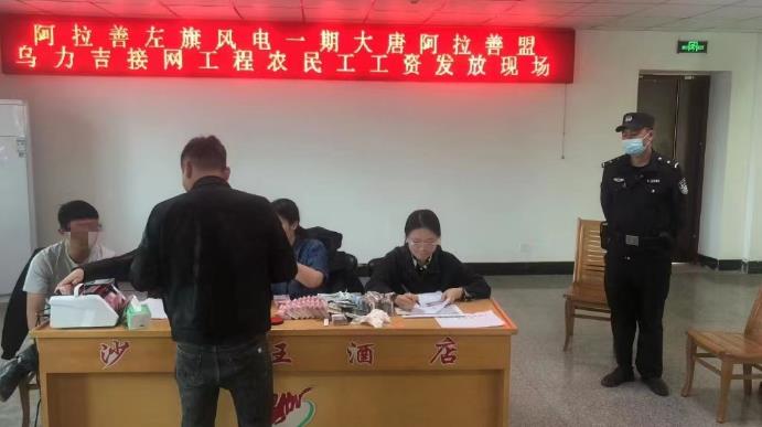 额鲁特路派出民警在工作中了解到,在阿左旗某程施工过程中劳务公司与施工方因工资单与实际工程量不符,双方未达成一致。导致62名农民工工资未按时发放。