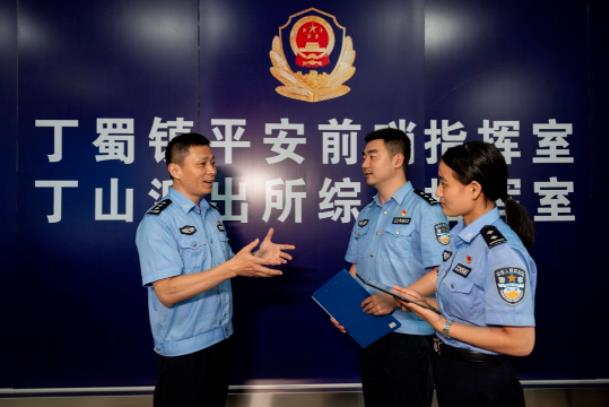 丁山派出所所长程晔在与民警交谈警务工作