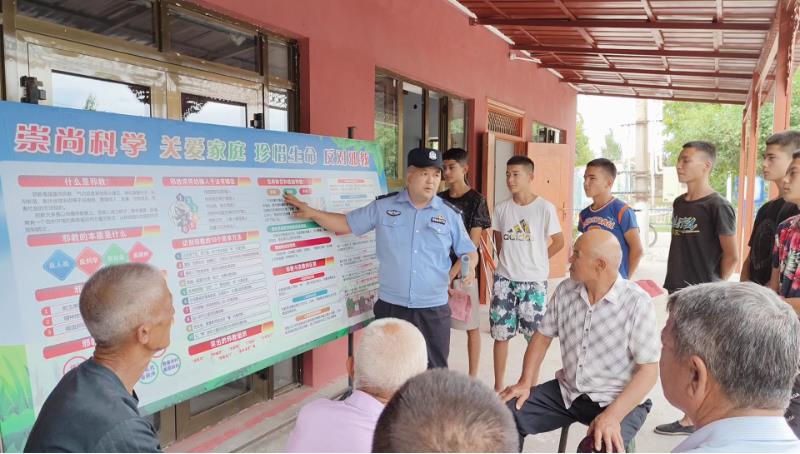 为进一步提高辖区居民的反邪教意识,营造文明和谐的社会氛围,2023年7月7日,伊宁县公安局武功派出所开展“反邪教宣传进乡村 知法守法促和谐”宣传活动,线上线下同步推进,厚积反邪教土壤,形成群防群治的良好局面。