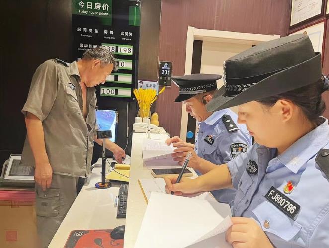 检查中,民辅警对辖区旅店业实名登记系统旅客信息是否正常录入、视频监控运行是否正常、“五必须”警示标志设置、消防设施器材是否齐全、安全通道是否畅通等方面进行全面细致的检查。同时,采取翻阅登记本、对外来人员进行抽查登记,询问其轨迹行踪等方式督促旅店业从业人员严格落实住宿人员实名登记制度,充分发挥旅馆业信息系统预警功能。民警向旅店负责人普及了《未成年人保护法》、《治安管理处罚法》等法律法规,督促提醒负责人严格履行保护未成年人的法律义务,要求在接待未成年人入住,或者接待未年人和成年人共同入住时,应当填报未成年人父母或监护人联系方式,询问相关情况,了解入住人员的身份关系等,发现有违法犯罪嫌疑的,应当立即向公安机关报告,并及时联系未成年人的父母或者其他监护人。
