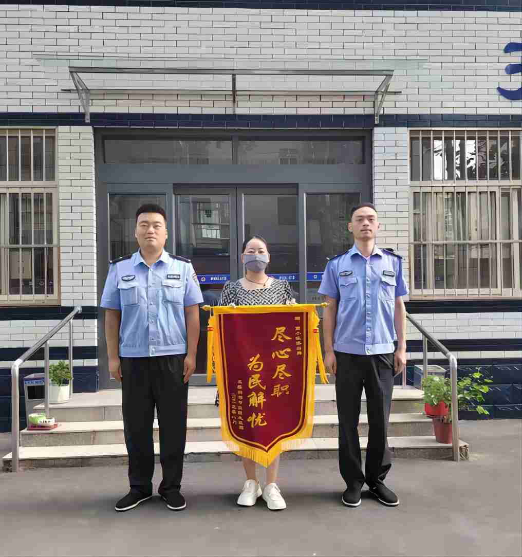 面对失而复得的电动摩托车,石女士对民辅警的帮忙充满了感激之情,特制作一面锦旗以表谢意。