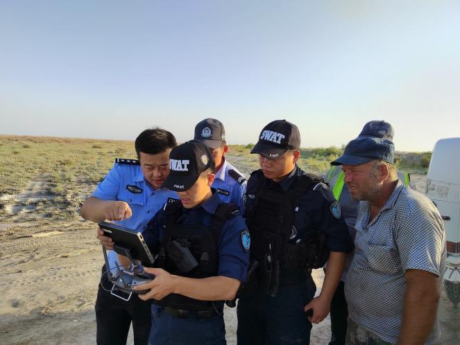 经了解,11日晚上将羊群赶到羊圈,早上去放羊的时候,发现羊群不见了,心急如焚的李大叔在周边找了好久却一无所获,这可急坏了李大叔,这些羊是李大叔的“命”啊。于是便报警求助,民警一边安抚李大叔的情绪,一边勘查现场,并未发现羊群被盗的相关线索,第一时间排除了羊群被盗的可能性,派出所立即出动4名民警辅警与李大叔家人兵分两路,以羊圈为中心沿着周边仔细搜索,因不确定羊群何时走失,加上胡杨林面积较大,地理环境复杂,树木纵横交错、杂草缠绕,只用人力搜索,不但寻找范围小、速度慢,还存在安全隐患。便将相关情况向局主要领导进行汇报,和硕县公安局党委委员、副局长张令立即指派特警大队无人机中队民警,积极配合,竭力寻找,全力为群众挽回损失。