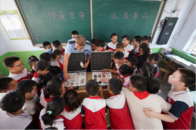 为进一步提高青少年禁毒意识,帮助学生树立远离毒品、健康成长的观念,信都公安分局刑侦大队禁毒中队联合派出所走进辖区中小学校,开展“珍爱生命 远离毒品”禁毒主题宣传活动。民警针对青少年身心发育成长的特定阶段特点,通过仿真毒品展示、播放禁毒宣传片、专题禁毒讲座等方式向在场学生普及禁毒相关的法律法规等知识,使学生们进一步认识到毒品的危害,同时,号召大家一定要从小树立正确的思想意识,养成良好行为习惯,擦亮眼睛谨慎交友,远离易染毒的环境和人群,拒绝毒品,珍爱生命。