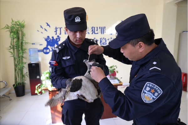 新疆讯(丁持盼 夏盼盼)11月15日,新疆巴楚县公安局新城派出所人民医院警务站民警接到群众报警称:在路边草丛里发现一只受伤的“大鸟”,需要救助。接警后,民警联系食药环大队民警共同赶赴现场。