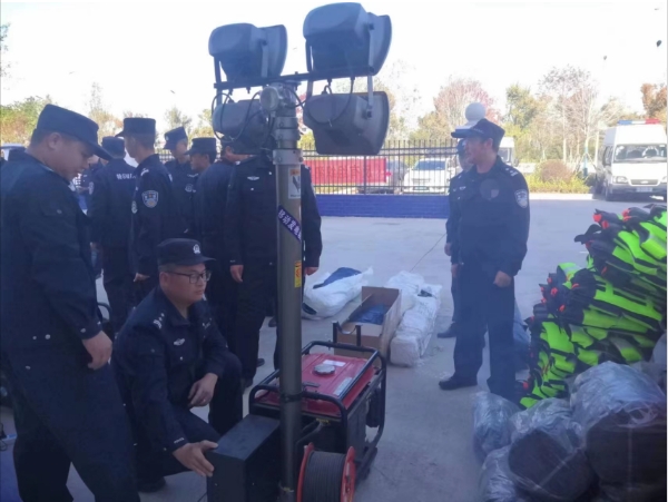 此次演练活动设计了应急物资装备调拨装运、350兆手台调试、视频会议应用平台布置及使用、应急发电机及照明设备使用、救援帐篷搭建、充气床垫使用等五个演练项目,我局选派了6位民(辅)警参与,出动装运车辆2辆,调拨12平米帐篷2顶、3平米帐篷5顶、防寒衣20件、毛毯20条、睡袋10个、行军床10张、应急照明灯1组、发电机1组、350兆手台10个、救生衣20件、救生圈20个、充气床垫10个等装备物资。