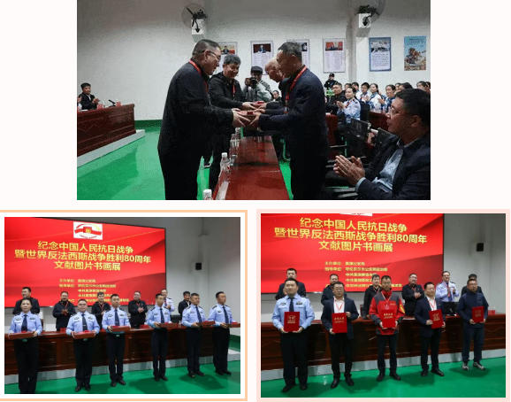 现场还为老军人代表举行了简朴而庄重的纪念章和慰问品颁发仪式,表达了对抗战英雄的崇高敬意和深切关怀。同时,也为多年来坚守公安岗位的军转警干部代表颁发了纪念章和纪念品,感谢他们转业不转志、退伍不褪色,把部队的优良作风带入警营,为平安莫旗建设持续贡献力量。 展览主办方还为此次活动的成功举办提供大力支持的若干位社会人士颁发了荣誉证书,以表彰他们为传承红色文化、弘扬社会正能量所作出的积极贡献。