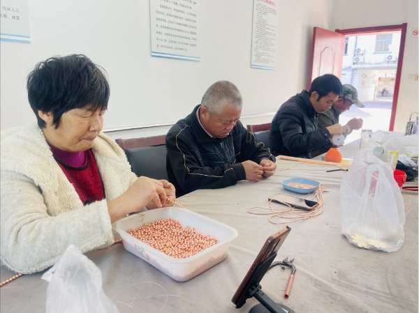 “姜梅,你这串珠耳环配色真好看,再调整下珠子间距就更精致啦!”管理员拿着样品凑近指导。近年来,射阳县临海镇以“赋能型助残”理念破解残疾人就业难题,“康乐残疾人之家”主动对接外地企业,引进技术简单、劳动强度低的手工加工项目,为肢体、智力、精神三类残障人士提供辅助性就业岗位,通过“计件发酬、多劳多得”机制激活自我“造血”能力,更贴心供应免费午餐,实实在在打消他们对生活与就业的顾虑。