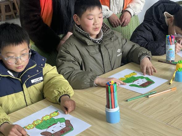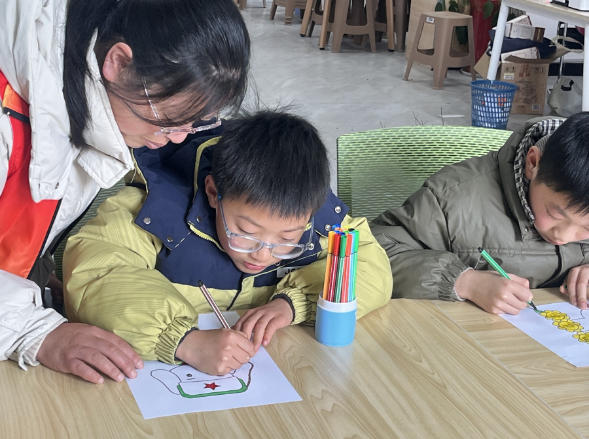 理论讲解结束后,进入趣味实践环节。志愿者们为孩子们发放了提前准备好的彩笔、画纸等材料,耐心指导孩子们绘制雷锋同志简笔画。“雷锋叔叔戴着棉帽,脸上带着微笑”,志愿者们手把手地教孩子们勾勒线条、填充色彩,用画笔定格雷锋形象。孩子们认真投入,一笔一画地描绘着心中的雷锋。在志愿者的指导下,一幅幅生动可爱的雷锋简笔画陆续完成,孩子们拿着自己的作品互相展示,脸上洋溢着自豪的笑容,雷锋的形象也在绘画过程中深深印刻在孩子们的心中。